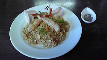 紅ズワイ蟹のピリ辛ピラフ(特製カニみそソース付)です