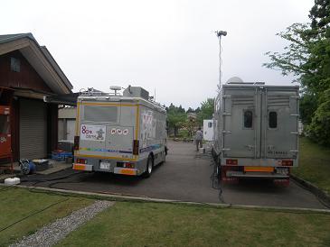 (NHKの中継車がH&B日本海倶楽部に到着!!色々な機材を積んで準備されていました。)