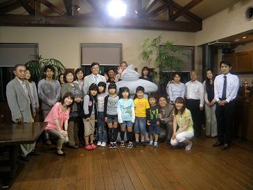 (イブニングニュース番組終了後には、今日スタジオ見学に集まって頂いた方と宮崎アナウンサー・伊藤アナウンサー・ことじろうくんと一緒に記念撮影をしました。)