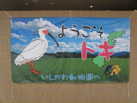 ←石川動物園の入場口に行くと朱鷺の垂れ幕が