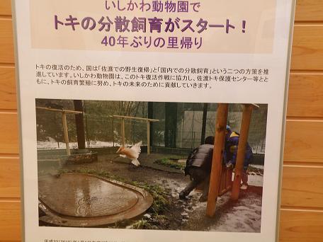 「大型モニターに映し出されるトキの映像を写真で撮ろうと思っていたのですが、展示映像コーナー解説員の方より許可がおりず、この写真しか撮れませんでした。期待してブログを見て下さった方申し訳ございません。トキの映像をご覧になるにはいしかわ動物園にゴーゴーです