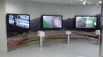 ←そして、朱鷺の展示映像コーナーに入ってすぐにボードがかけてあり、朱鷺が40年ぶりの里帰り、分散飼育がスタート。ボードの写真は繁殖ケージ内の画像です。