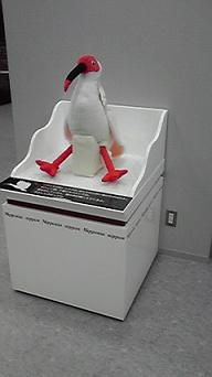 ←トキ展示映像コーナーに入って中間あたりに、朱鷺の重さを体感できる縫いぐるみが展示されています。