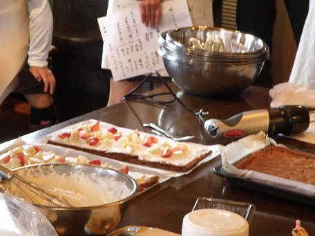 「パティシエ中野氏の生クリームを塗る手さばき惚れ惚れしますね。レクチャーを受けた方も見入るように釘づけでした。」
